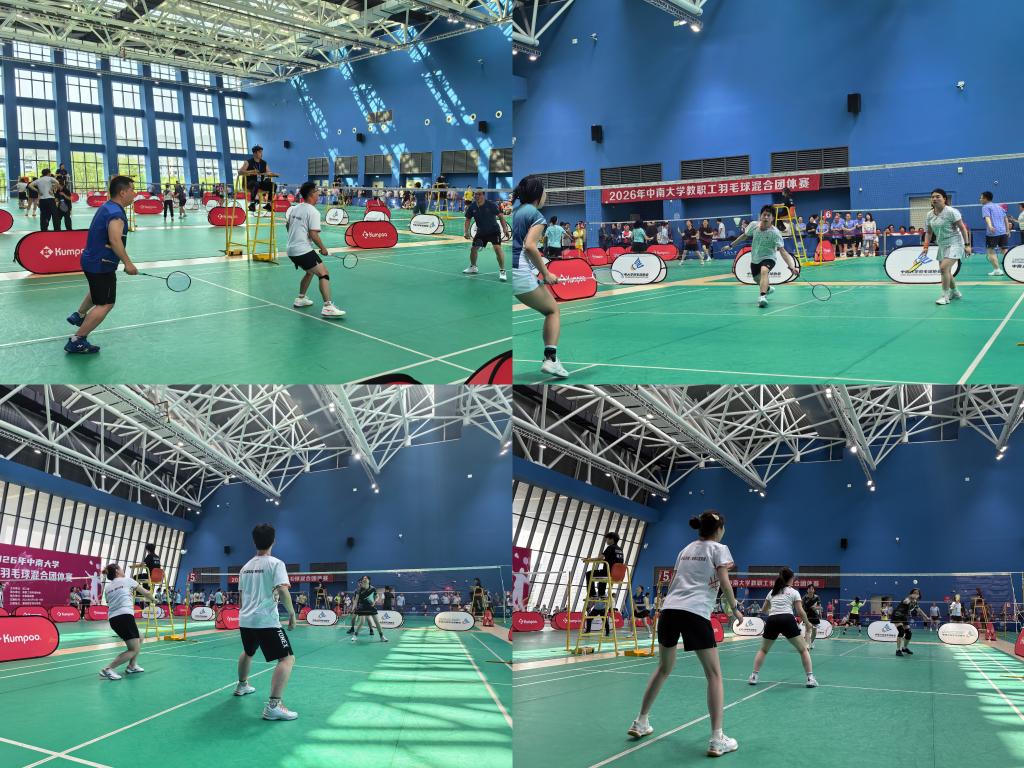 4月18至19日,由校工会主办的2026年中南大学教职工羽毛球混合团体赛在潇湘校区羽毛球馆举行。我院积极参赛,派出由14名职工组成的羽毛球代表队出征赛场,经过激烈角逐,代表队凭借奋勇拼搏和团结协作,荣获团体三等奖。